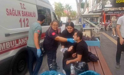 Manavgat'ta yaya geçidinde duran motosiklete çarpmamak için frenleyen sürücü devrildi