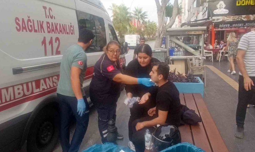 MANAVGAT İLÇESİNDE MOTOSİKLET DEVRİLDİ, SÜRÜCÜSÜ YARALANDI