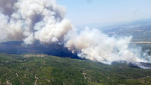 Manisa'nın Akhisar ilçesinde başlayan orman yangını, havadan ve karadan müdahale ile kontrol altına alınmaya çalışılıyor.