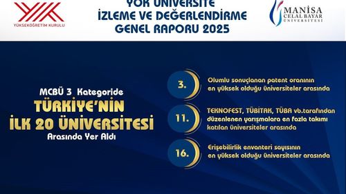 Manisa Celal Bayar Üniversitesi, YÖK 2025 Raporu'nda üç göstergede ilk 20'ye girerek patent, yarışma ve erişilebilirlik alanlarında üst sıralarda yer aldı.
