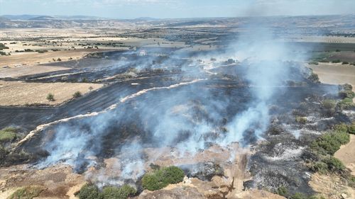 Manisa'nın Kula ilçesinde, buğday tarlasındaki yangın ekiplerin müdahalesiyle kontrol altına alındı.