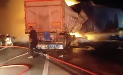 Manisa'da İzmir-İstanbul Otoyolu'nda İki Tırın Çarpışması ve Çıkan Yangın