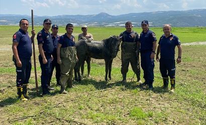 Manisa'nın Alaşehir ilçesinde bataklığa saplanan katırlarını kurtarmak isterken mahsur kalan kişi ekiplerce kurtarıldı.