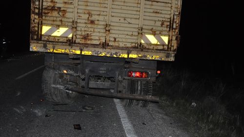 Manisa'nın Salihli ilçesinde otomobilin park halindeki kamyona çarpması sonucunda 1 kişi hayatını kaybetti, 3 kişi yaralandı.