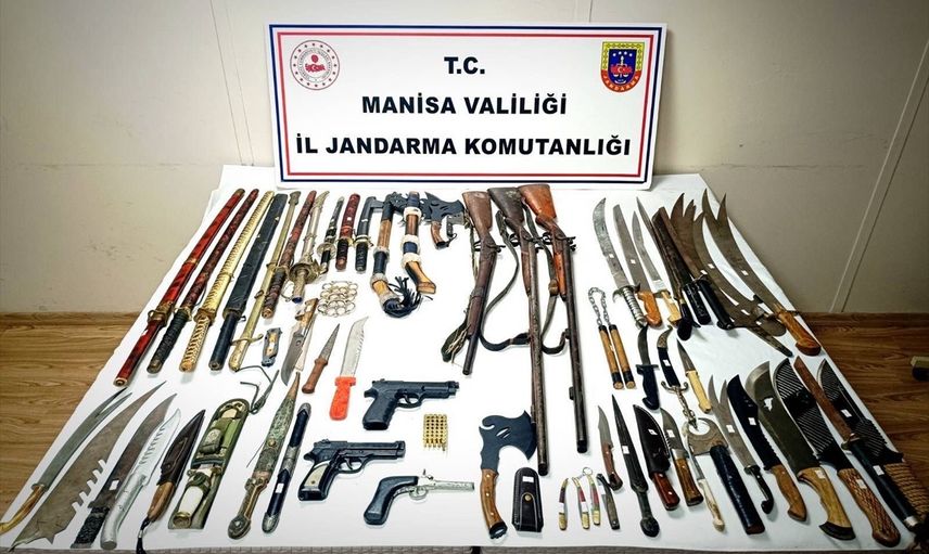 Manisa'nın Yunusemre ve Akhisar ilçelerinde düzenlenen ruhsatsız silah operasyonunda 7 zanlı gözaltına alındı. Akhisar ve Yunusemre ilçelerindeki adreslerde yapılan aramalarda, 16 ruhsatsız tabanca ve şarjörü, 35 mermi, 15 kılıç, 4 muşta, 8 bıçak, 7 kama, 5 balta, 11 hançer, 5 çakı ile 2 kasatura ele geçirildi.