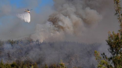 Manisa'nın Yunusemre ilçesinde çıkan orman yangınına 6 hava aracı ve 42 ekiple müdahale ediliyor.