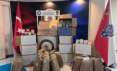 Aramalar sonucunda 140 kilogram kıyılmış tütün, 16.100 adet içi doldurulmuş makaron ile 81.200 adet boş makaron ele geçirildi.