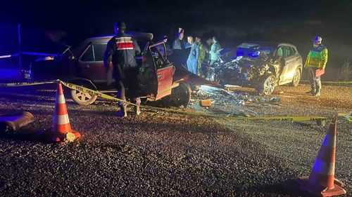 Manisa Demirci'de iki otomobilin çarpışması sonucu aynı aileden 3 kişi yaşamını yitirdi, 1 kişi yaralandı; jandarma soruşturma başlattı.