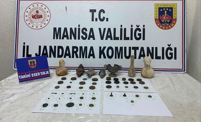 Manisa'nın Akhisar ilçesinde gerçekleştirilen bir operasyon sonucunda, evde yapılan aramada 54 parça tarihi eser ele geçirildi. Olay, İl Jandarma Komutanlığı Kaçakçılık ve Organize Suçlarla Mücadele (KOM) Şube Müdürlüğü ile Akhisar İlçe Jandarma Komutanlığı ekiplerinin yürüttüğü takip sonucu gerçekleşti.