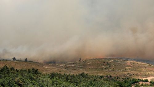 Manisa'nın Akhisar ilçesindeki orman yangınına havadan ve karadan müdahale devam ediyor. Yangın, 28 Haziran'da başladı.