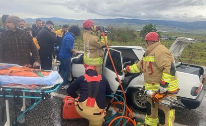 Manisa'nın Alaşehir ilçesinde otomobilin kamyona ve bariyerlere çarpması sonucu 5 kişi yaralandı.