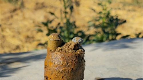 Manisa'nın Salihli ilçesinde bir zeytin bahçesinde patlamamış top mermisi bulundu. Bomba imha uzmanları tarafından imha edildi.