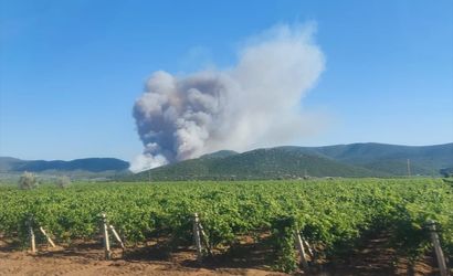 Manisa'nın Saruhanlı ilçesinde çıkan orman yangınına ekipler havadan ve karadan müdahale ediyor.