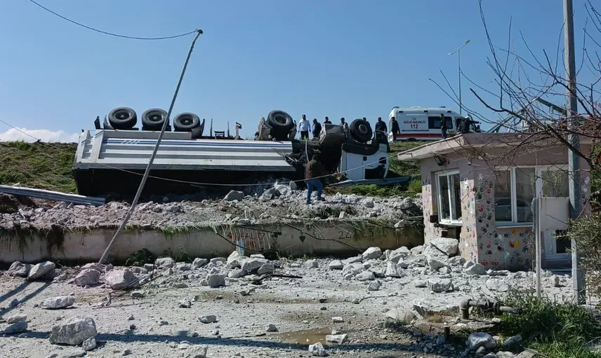 Manisa Sarıgöl'de moloz yüklü tır okul bahçesine girdi