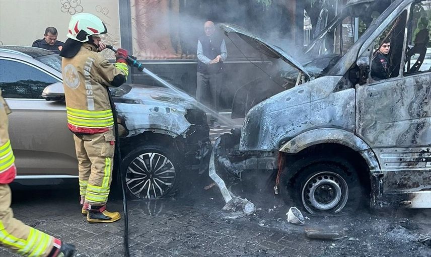 İtfaiye ekipleri yangına müdahale ederek söndürdü. Yangın nedeniyle minibüs ve park halindeki otomobilde hasar oluştu.