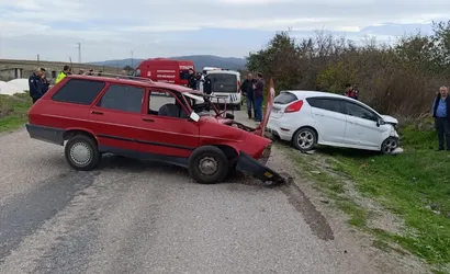Manyas'ta iki otomobil çarpıştı, bir sürücü ağır yaralandı