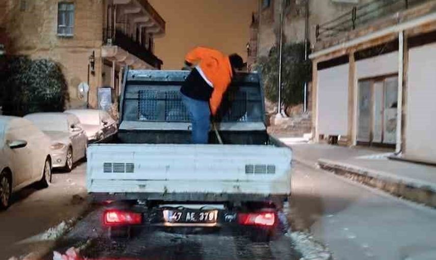 Mardin’de gece yarısından sonra etkisini artıran kar yağışı nedeniyle Büyükşehir Belediyesi ekipleri, kent genelinde ana arterlerde küreme, tuzlama ve solüsyon çalışmaları yürüttü.