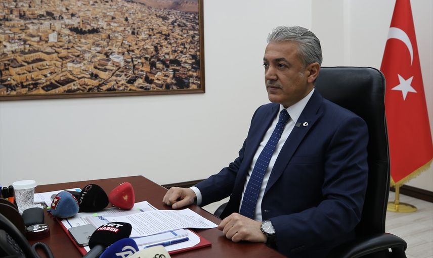 Mardin'de, "İl Afet Risk Azaltma Planı İzleme ve Değerlendirme Toplantısı" gerçekleştirildi. Vali Tuncay Akkoyun (ortada), Valilik'te düzenlenen toplantının ardından gazetecilere açıklamada bulundu.