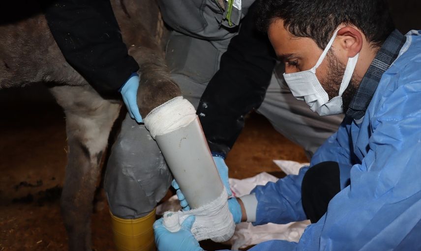Mardin'in Midyat ilçesine bağlı Yayvantepe Mahallesi'nde, araç çarpması sonucu ön sol ayağı kırılan bir eşeğe, gereken müdahaleler yapılarak protez takıldı. Olayın ardından Midyat Belediyesi Hayvan Rehabilitasyon Merkezi'nden ekipler, bölgeye yönlendirildi.