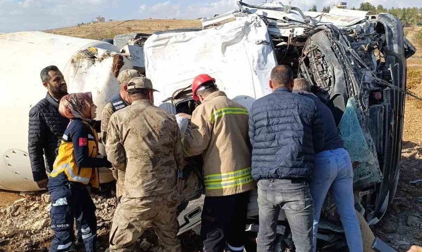 MARDİN'DE KONTROLDEN ÇIKARAK DEVRİLEN BETON MİKSERİNİN SÜRÜCÜSÜ YARALANDI.