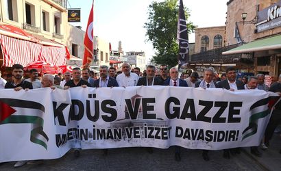 Basın açıklamasının ardından, saldırılarda hayatını kaybedenler için dua okundu. Ardından katılımcılar, ellerinde Filistin bayrakları ile Birinci Cadde'den Eski Sabancı Kent Müzesi'ne kadar yürüyüş düzenledi.