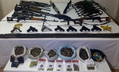 Arama sırasında, makineli tüfek, 8 piyade tüfeği, 8 Kalaşnikof, 7 tabanca ve 5 av tüfeği gibi birçok silah ile birlikte 5 bin 144 fişek, balistik yelek ve keskin nişancı dürbünü gibi mühimmatlar da ele geçirildi.