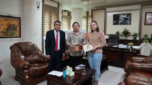 Mardin'de Uluslararası Sıfır Atık Günü kapsamında İklim Değişikliği ve Sıfır Atık Müdürlüğü, Nusaybin Belediye Başkanı Gülbin Şahin Dağhan'ı ziyaret etti.
