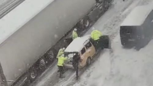 Mardin'de yoğun kar nedeniyle mahsur kalan araçları polis ve vatandaşlar el birliğiyle kurtardı; Vali Tuncay Akkoyun koordinasyonundaki çalışmalar sürüyor.