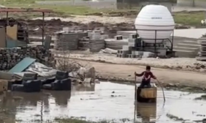 Mardin'in Kızıltepe ilçesinde etkili olan yağışın ardından oluşan su birikintisi, Selahattin Eyyubi Mahallesi'nde ilginç görüntülere sahne oldu. Yoğun yağmur sonrası sokakta biriken suda, küçük bir çocuk buzdolabı kasasını kayık gibi kullanarak gezintiye çıktı.
