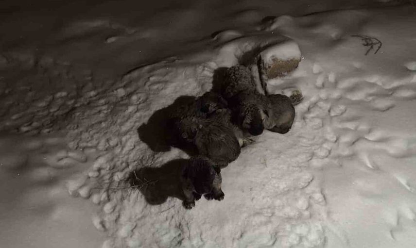 Öztemel, soğuktan titreyen yavruları aracına alarak en yakın akaryakıt istasyonuna götürdü. İstasyonda güvenli ve sıcak bir alana alınan yavruların hayata tutunduğu belirtildi.