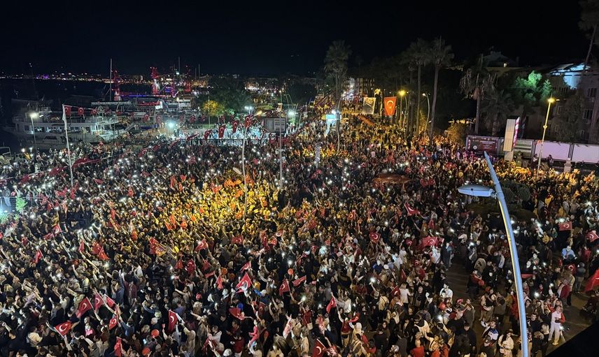 Muğla'nın Marmaris ilçesinde, Cumhuriyet'in 102. yıl dönümü ve 29 Ekim Cumhuriyet Bayramı dolayısıyla fener alayı gerçekleştirildi. Kutlamalar, ilçe merkezinde yoğun katılımla yapıldı.