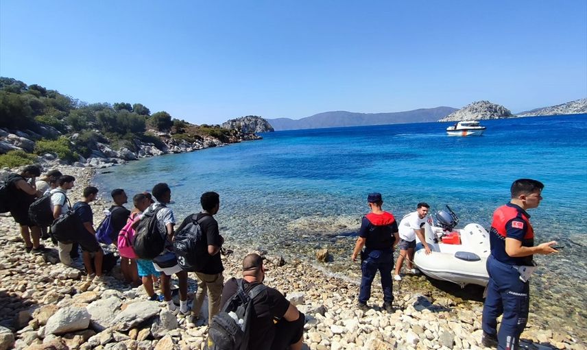 Muğla'nın Marmaris ilçesindeki bir koyda, 13 düzensiz göçmen ile 2 göçmen kaçakçılığı şüphelisi yakalandı. Düzensiz göçmenler, işlemlerinin ardından İl Göç İdaresi Müdürlüğüne teslim edildi.