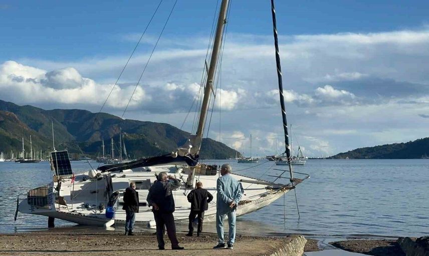 Marmaris’te fırtına üç yelkenliyi karaya vurdu; tekneler vinçle kaldırıldı