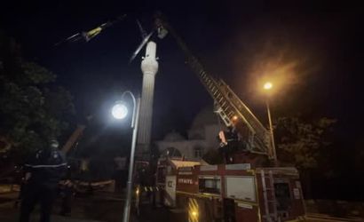Olay yerine gelen itfaiye ekipleri, bölgedeki risklere karşı geniş güvenlik önlemleri aldı ve külahı sökmek üzere çalışma başlattı. Belediyeye bağlı ekiplerin koordinasyonunda gerçekleştirilen müdahalenin, külahın tamir edilip tekrar yerine takılmasının hedeflendiği bildirildi.