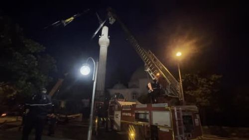 Marmaris'te fırtınada zarar gören cami minaresinin külahı için çalışma başlatıldı