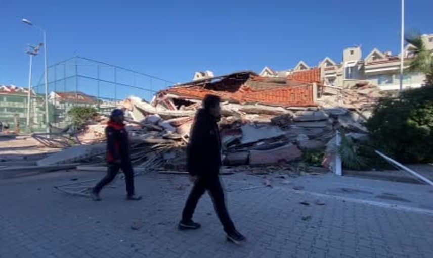 Marmaris'te güçlendirme çalışması yapılan apart otel çöktü
