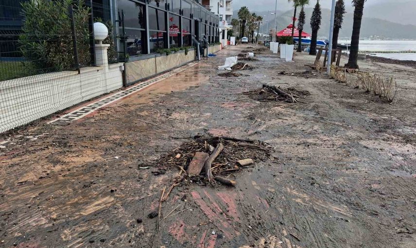 Marmaris'te sağanak ve fırtına kıyıya atıkları taşıdı