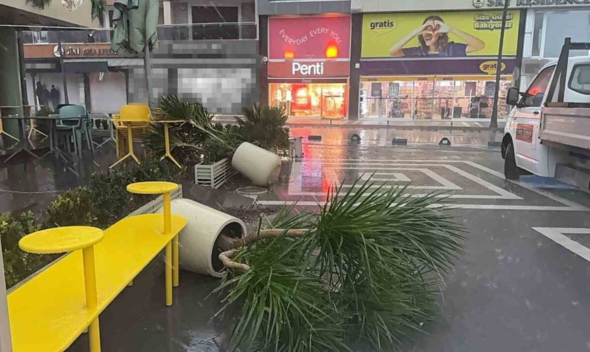 Muğla'nın Marmaris ilçesinde sabah saatlerinden itibaren etkisini artıran şiddetli fırtına ve sağanak yağış, ilçe genelinde hayatı olumsuz etkiledi.