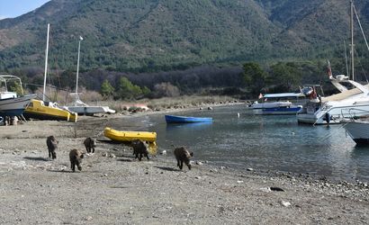 Muğla'nın Marmaris ilçesinde, aç kalan yaban domuzları yeni bir yaşam alanı bulmak için şehre inerek sahilde yiyecek aramaya başladı. Adaköy Mahallesi'nde bulunan Yalancıboğaz mevkisinde, bir grup yaban domuzu sahil boyunca dolaşarak yiyecek bulmaya çalıştı.