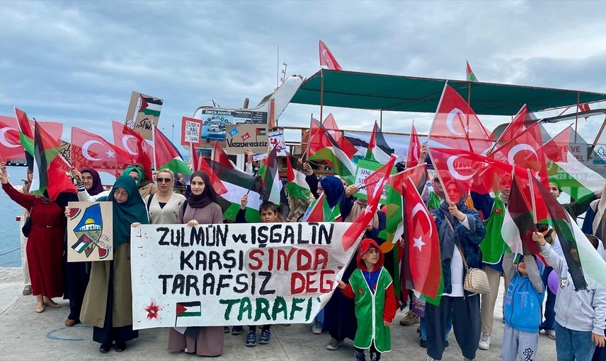 İsrail'in "Gazze Özgürlük Filosu"nda yer alan Mavi Marmara gemisine saldırısının 15. yılında Gazze'ye yönelik ablukaya dikkati çekmek ve Filistin halkıyla dayanışma mesajı vermek amacıyla Sinop'ta Aşıklar Sahili'nde etkinlik düzenlendi.