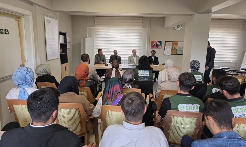 Yeşilay Genel Başkanı Mehmet Dinç (ortada), Bingöl'de Yeşilay Danışmanlık Merkezi'nde düzenlenen "Medeniyet Söyleşileri" programında öğrencilerle bir araya geldi.