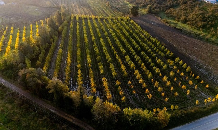 Düzce'de doğup Sakarya üzerinden Karadeniz'e ulaşan Melen Çayı'nın çevresindeki ağaçlar, sonbaharın gelişiyle birlikte muhteşem bir renk paletine dönüştü.