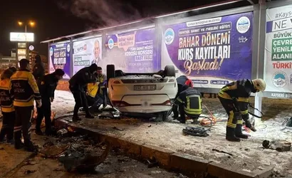 Melikgazi'de kavşakta çarpışma: Takla atan otomobil alev aldı, 2'si ağır 3 yaralı