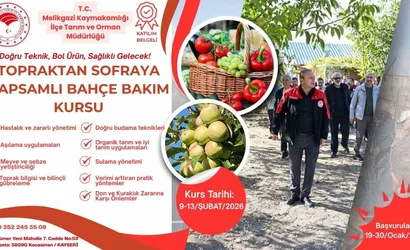 Melikgazi İlçe Tarım ve Orman Müdürlüğü'nün düzenlediği Topraktan Sofraya Kapsamlı Bahçe Bakım Kursu için başvuru süreci resmen başladı. Teoriden Uygulamaya kurgulanan program, üreticiler ve hobi bahçesi sahiplerinin karşılaşabileceği sorunlara pratik çözümler sunacak şekilde planlandı.
