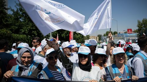 Memur-Sen, 8. Dönem Kamu Toplu Sözleşme görüşmelerinde Kamu İşveren Heyeti'nin zam teklifini yetersiz bulduğunu belirterek Çalışma ve Sosyal Güvenlik Bakanlığı önünde basın açıklaması yaptı.