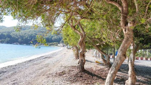 Menteşe Belediyesi ekipleri, Akbük Plajı’nda devrilen sakız ağacını kök ve gövdeye zarar vermeden insan gücü ve halat sistemiyle yerine dikti.