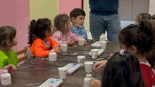 Muğla Menteşe'de, Uluslararası Gençlik Merkezi'nin 'Merkezim Her Yerde' projesi kapsamında düzenlenen atölyeler, öğrencilere resim, seramik ve ebru eğitimi sunuyor.