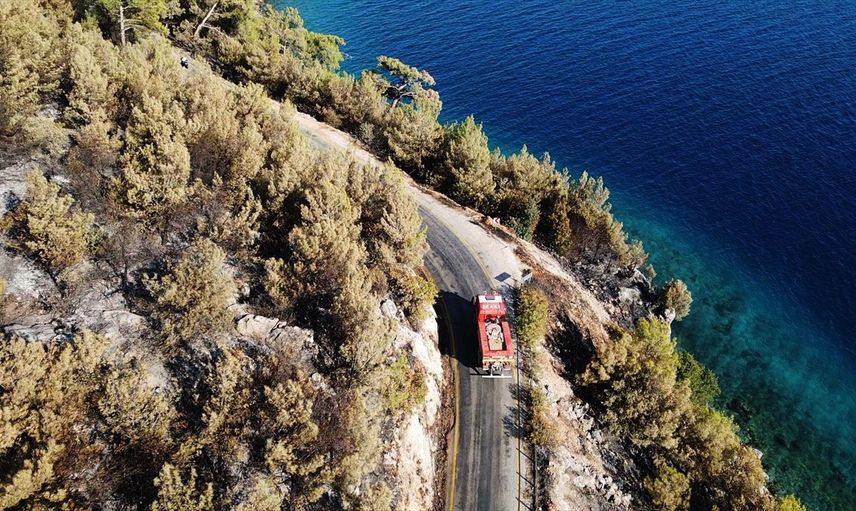 Muğla'nın Menteşe ilçesinde çıkan orman yangını, dron ile havadan görüntülenerek durumun ciddiyeti gözler önüne serildi. Turnalı Mahallesi'nde ormanlık alanda sabaha karşı başlayan yangın, rüzgarın etkisiyle hızla yayıldı.
