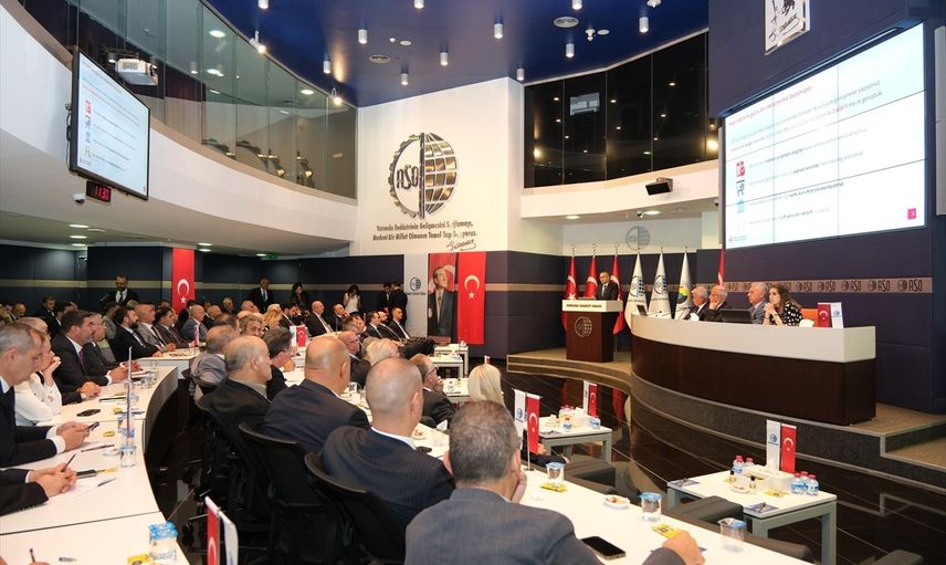 ASO'nun ağustos ayı meclis toplantısı, Türkiye Cumhuriyet Merkez Bankası Başkanı Fatih Karahan'ın (sağda) katılımıyla gerçekleştirildi. Karahan'ı toplantıya gelişinde, Ankara Sanayi Odası (ASO) Başkanı Seyit Ardıç (solda) karşıladı.