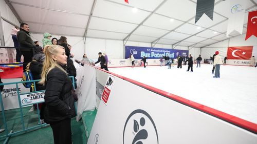 Merkezefendi Kültür Merkezi yanına kurulan Buz Pateni Pisti, sokak lezzetleri ve lunaparkla birlikte gençlerin yeni buluşma noktası oldu; pist Mart ayına kadar her gün açık.
